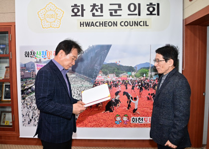 군민과 함께하는 의정, 행복한 군민, 공정과 상식으로 만들어가는새로운 화천군의회