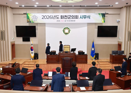 군민과 함께하는 의정, 행복한 군민, 공정과 상식으로 만들어가는새로운 화천군의회